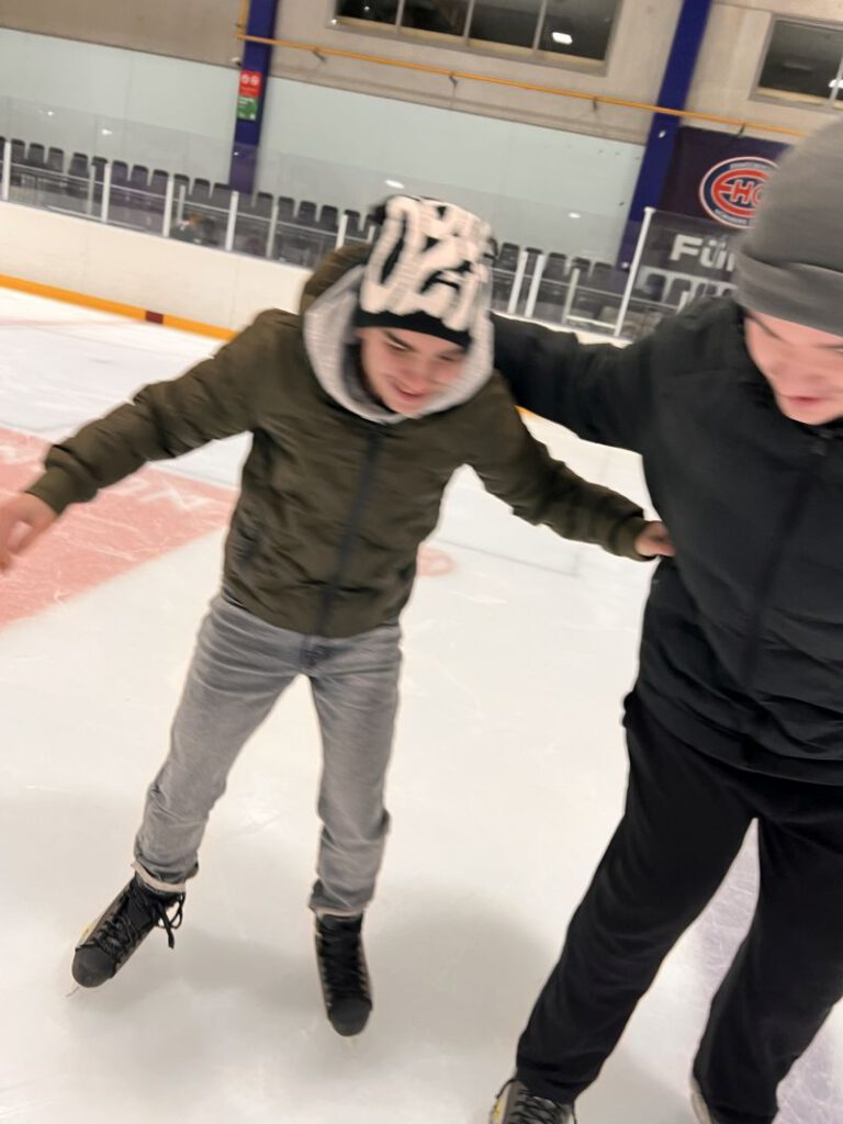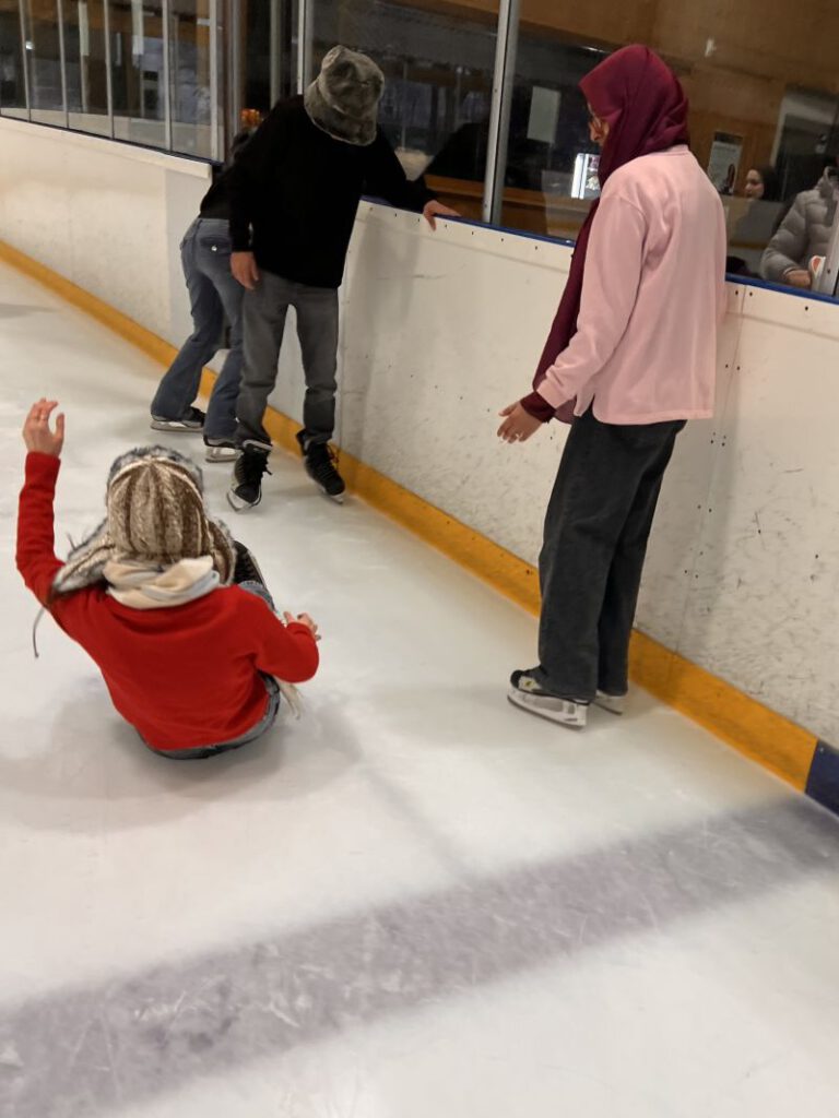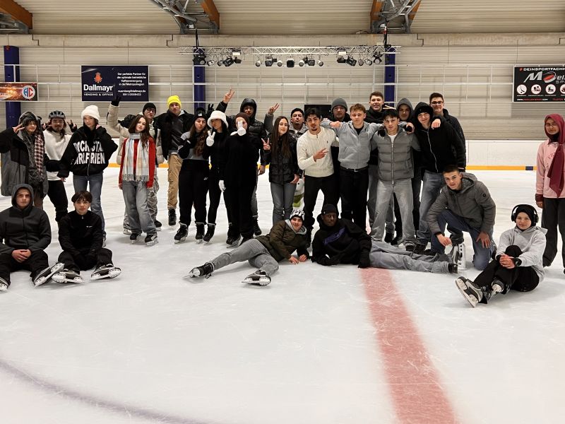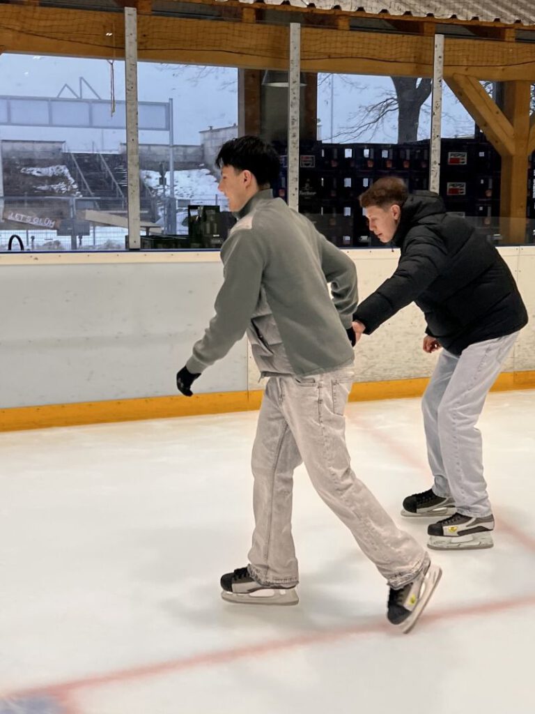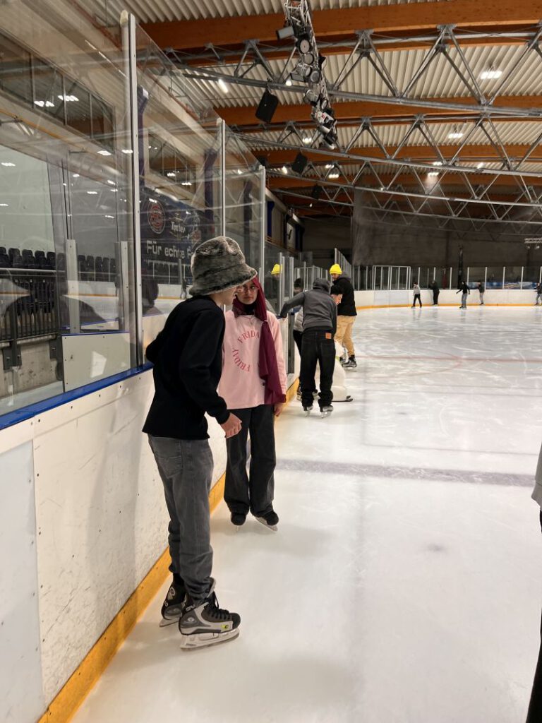 Raus aus dem Klassenzimmer, rein in die Eis-Arena! Die Klassen V1 und V2 verbringen eine sportliche Stunde beim Eislauf. Eine Stunde lang gehört die Eisfläche ganz uns.