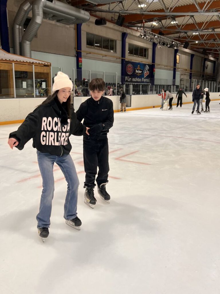 Ob Anfänger oder Fortgeschrittene: Alle wagen sich aufs Eis. Während die einen anfangs noch vorsichtig am Rand entlanggleiten (oder sich mehrfach auf dem Hosenboden wiederfinden), drehen andere schon sichere Runden und probieren kleine Tricks aus. Stürze bleiben natürlich nicht aus, aber Aufstehen, Lachen und Weitermachen gehören genauso dazu. Am Ende sind sich alle einig: Schuleislauf macht Spaß und sollte es öfter geben. (rm)
