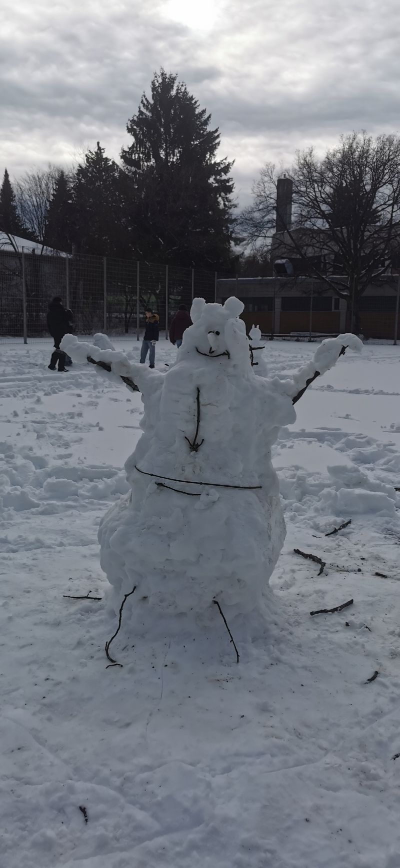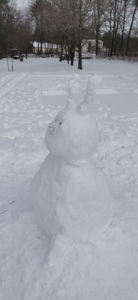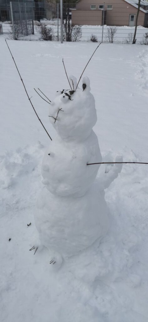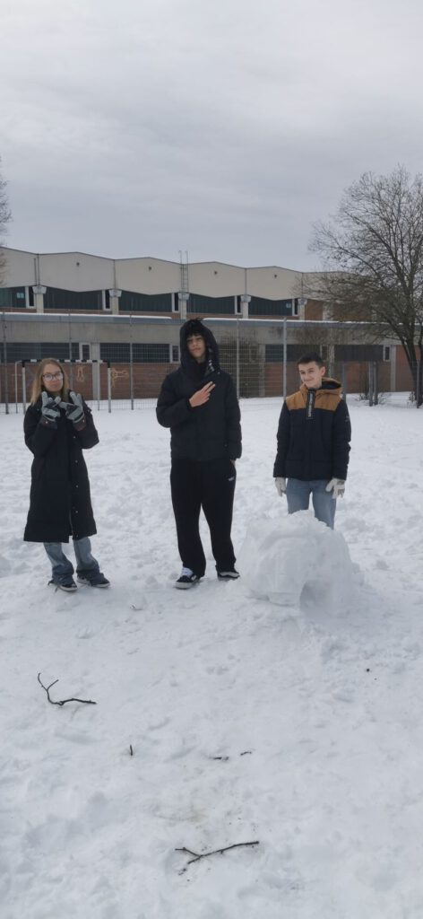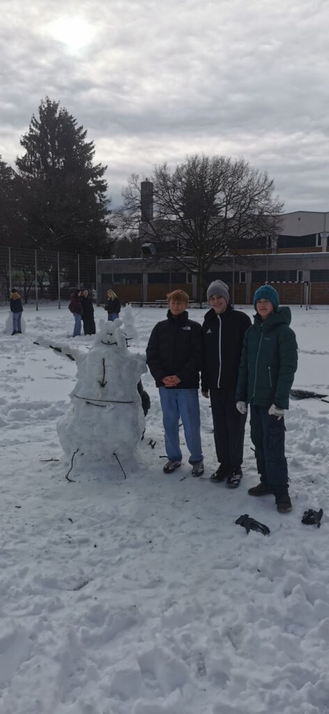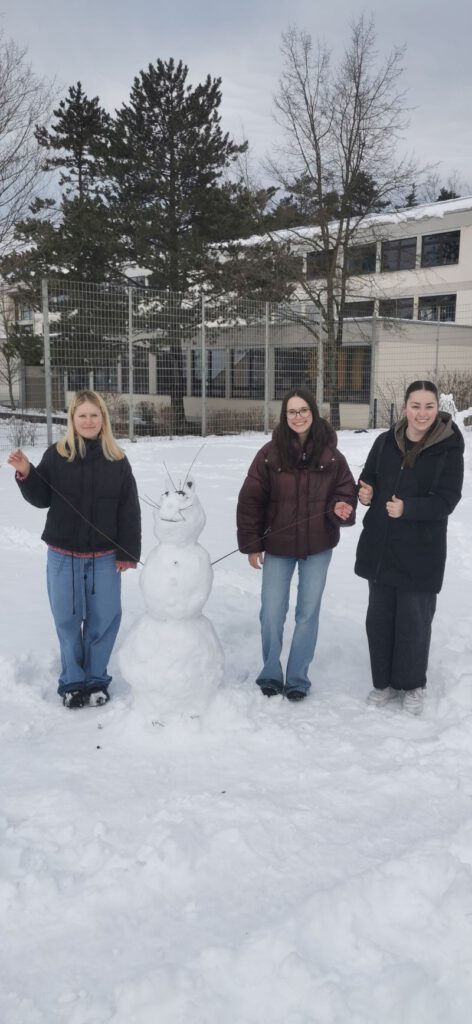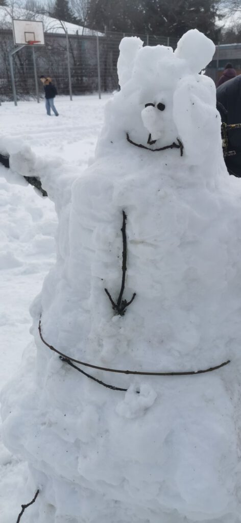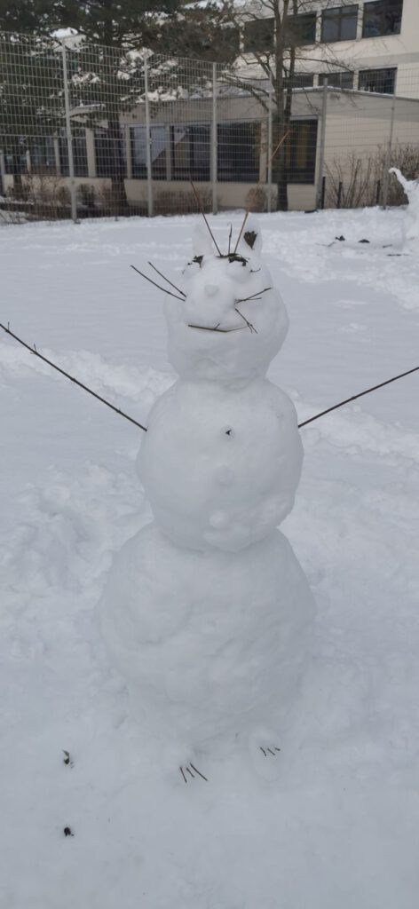 Die Schüler*innen der Klasse M7 gestalten im Kunstunterricht in Teamarbeit fantasievolle Schneefiguren. Erlaubt war alles, was mit Schnee und natürlichen Materialien möglich ist. (rb)
